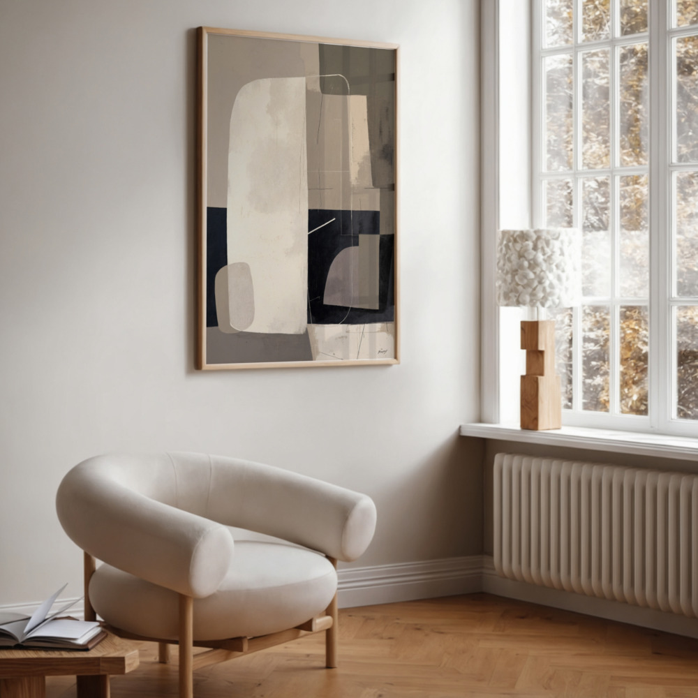 ציור אבסטרקט מינימליסטי בגווני אדמה