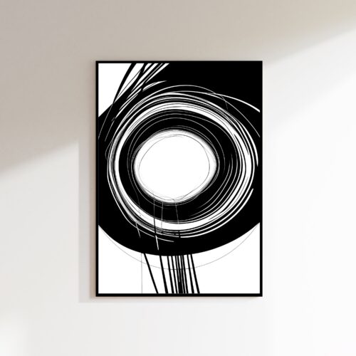 Black Circles – ציור קווים שחור לבן בסגנון מופשט