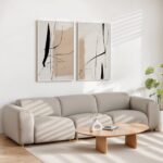 סט תמונות אבסטרקט מינימליסטי עם ציור קווים בצבעי שמן. זוג תמונות בסגנון מודרני המשלב משיכות מכחול בגווני אדמה ניטרליים של שחור ובז׳. אידיאליים לסלון או חדר שינה. משתלבות בצורה מושלמת עם מגוון סגנונות עיצוב, החל ממודרני ועד כפרי. הדפסת תמונות איכותית המאפשרת לכם ליהנות מיצירת אמנות מקורית. מודפסות על נייר פיין ארט איכותי עבה או בד קנבס טבעי לבחירתכם ומגיעות במגוון גדלים ומסגרות.