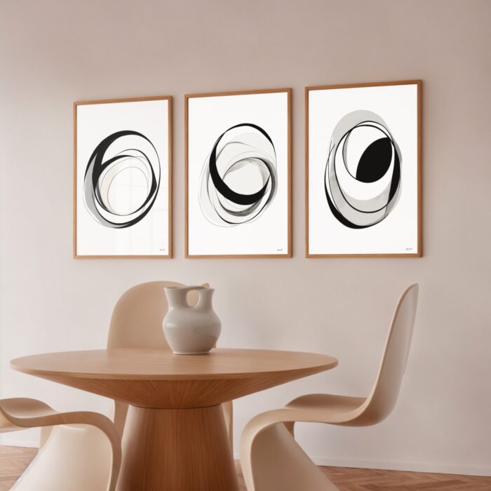 הוסיפו יופי מינימליסטי ומונוכרומטי לבית עם סט תמונות אבסטרקט עם עיגולים שחורים ולבנים ניטרליים ופשוטים וצלליות בסגנון מינימליסטי. סט 3 תמונות שחור לבן המציגות יצירה אבסטרקטית ייחודית, המשלבת צורות עיגולים גאומטריות בשחור לבן, ויוצרת מראה מודרני ומונוכרומטי. הסט יתאים באופן מושלם לכל חלל בסגנון מודרני או מינימליסטי, ויוסיף לו תחכום ועומק. התמונות מודפסות על נייר צילום איכותי או בד קנבס טבעי, וניתן לבחור מבין מגוון גדלים וסוגי מסגרות.