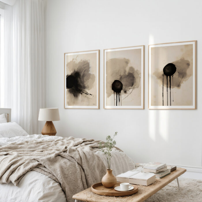 הוסיפו טאצ׳ של יופי פשוט וטבעי לבית עם סט תמונות וואבי סאבי ייחודי. שילוב מרתק של צורות גיאומטריות וקווי עדינים בגווני שחור ובז’ ניטרליים יוצר מראה מינימליסטי ומרגיע לכל חלל. סט תמונות מושלם לתלייה מעל הספה בסלון, בחדר השינה או אפילו במסדרון, ומהווה תוספת עיצובית ייחודית לכל בית. הפרינטים שלנו מודפסים על נייר עבה ואיכותי או על בד קנבס טבעי. ניתן לרכוש את התמונות במגוון גדלים, כך שתוכלו להתאים אותן באופן מושלם לחלל הביתי שלכם. התמונות מגיעות מוכנות לתלייה, וכוללות תושבות תלייה נוחות.