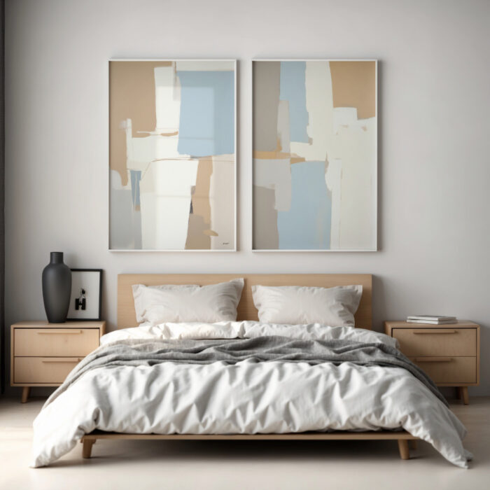 הוסיפו מגע של תחכום מודרני ועדכני לחללי לבית עם סט תמונות לבית בסגנון אבסטרקט. זוג תמונות בגוונים של כחול שמיים ובז׳ בעיצוב מינימליסטי וצבעים ניטרליים של אדמה ושמיים משדרים אווירה רגועה, שלווה אך בעלת תחכום מודרני עדין. סט תמונות אבסטרקט מקורי המשלב משיכות מכחול עדינות וקווים נקיים בהשראת העיצוב המודרני.