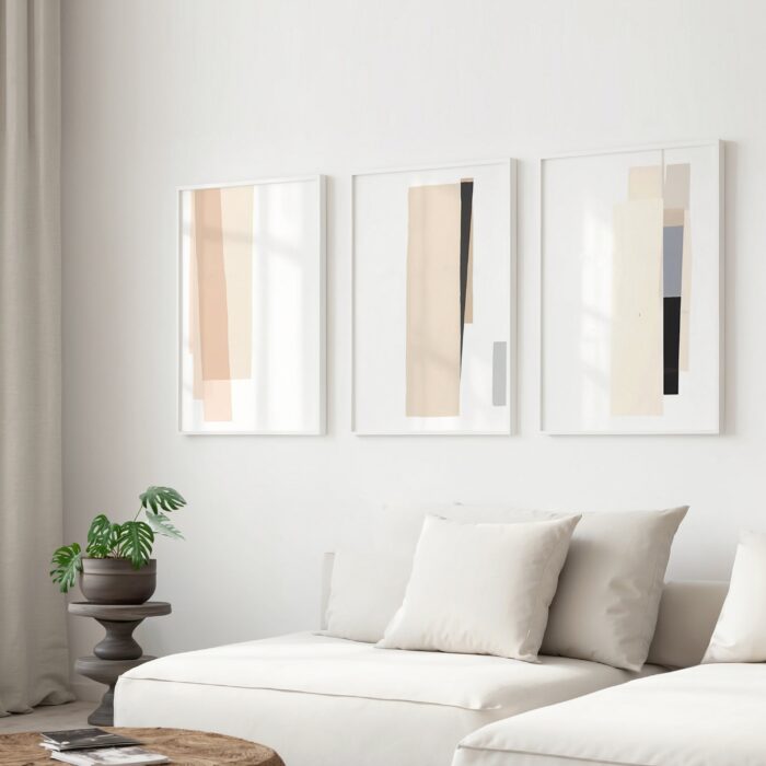 הוסיפו סטייל לחלל הבית עם סט 3 תמונות לסלון של צורות גאומטריות בגווני בז׳ ושחור. סט תמונות ייחודי המשלב 3 יצירות אמנות אבסטרקטיות בסגנון נורדי, מושלמות להוספת טאצ׳ עיצובי לסלון ולכל חדר בבית. צורות גאומטריות פשוטות ונקיות, בגווני בז׳ ושחור ניטרליים, יוצרות מראה מודרני ומינימליסטי. סט תמונות מושלם עבור כל מי שמחפש להוסיף אומנות ייחודית ועכשווית לבית. תלו את התמונות מעל הספה בסלון ליצירת מוקד עניין ייחודי. השתמשו בהן כחלק מקיר גלריה לצד הדפסים אמנותיים אחרים בסגנון נורדי, או הוסיפו אותן לחדר השינה ליצירת אווירה רגועה וייחודית.