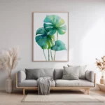 הכניסו אל חלל הבית תחושת רוגע טרופי אווירה ירוקה עם תמונה מרהיבה של עלי מונסטרה. שטיפות צבעי מים זוהרות מחיות אשכול עלים אייקוניים, המדגישים את הקרעים הייחודיים ואת השילוב החי של כחולים, טורקיז וירוקים טבעיים. שכבות שקופות וכתמי צבע אורגניים יוצרים תחושת עומק ותנועה טבעית, עם איזון מושלם בין רעננות ועידון עיצובי.