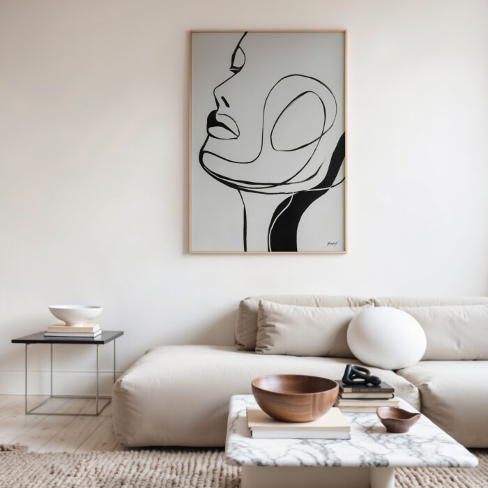 פוסטר ציור קו – פרצוף אשה אבסטרקטי בסגנון נורדי