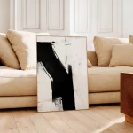 יצירת אמנות מקולקציית תמונות שחור לבן של פרינט סטודיו. הוסיפו תחכום מינימליסטי לבית עם ציור בשחור לבן בסגנון מודרני. ציור שמן עם קווים ומשיכות מברשת אקספרסיביות במראה מינימליסטי יוסיף מגע אורבני ונקי לעיצוב הפנים שלכם. הפשטות של הציור מאפשרת לו להשתלב בקלות עם מגוון סגנונות עיצוב, בין אם מדובר בסלון מודרני, חדר שינה בשחור לבן או משרד בסגנון תעשייתי. התמונה מגיעה במגוון גדלים להתאמה מושלמת לכל חלל, מידות גדולות לחללים גדולים במידות קטנות לפינות קטנה ואינטימית שזקוקה לתוספת עיצובית. הדפסה על נייר פיין ארט איכותי או בד קנבס טבעי לבחירתכם. ההדפס מגיע מוכן לתלייה, כך שתוכלו ליהנות מיצירת האמנות החדשה שלכם תוך זמן קצר.