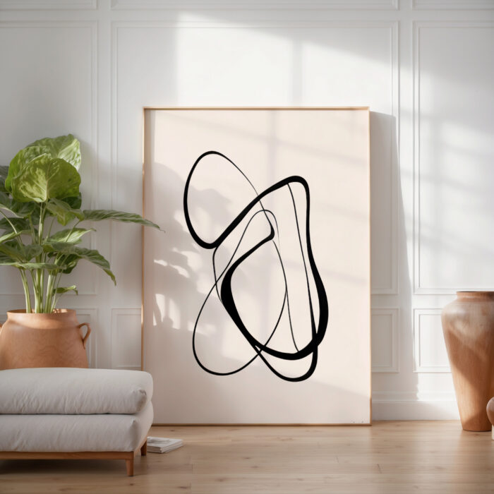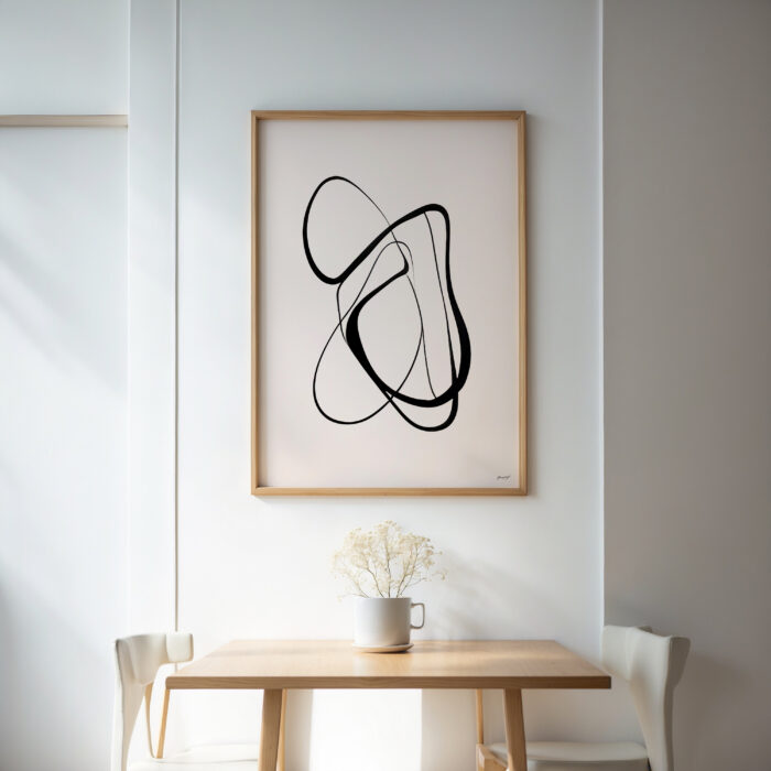 הוסיפו נגיעה של מינימליזם נורדי לביתכם עם ציור קו פשוט בשחור בז׳. יצירת אמנות מקורית, משקפת את האסתטיקה הנקייה והפשוטה של עיצוב נורדי. משיכת קו אחת עדינה משרטטת צורה גיאומטרית פשוטה, יוצרת תחושה של שקט ורוגע. תמונה זו משתלבת בצורה מושלמת עם חדרים בסגנון נורדי, מודרני או מינימליסטי, והיא מהווה תוספת נהדרת לכל חלל. ניתן להדפיס במגוון אפשרויות הדפסה וגדלים, כך שתוכלו להתאים את size התמונה והtype שלה לצרכים שלכם.