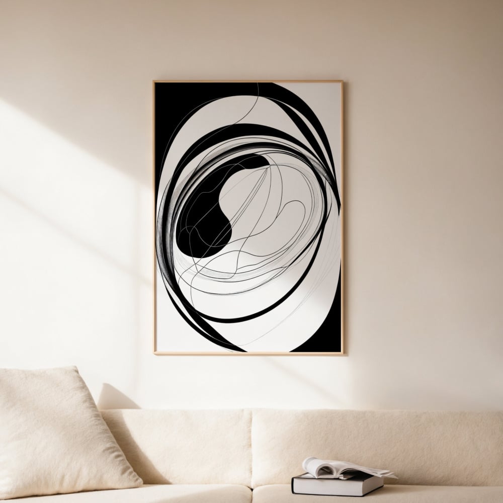 הוסיפו נגיעה ייחודית לבית או למשרד עם ציור קווים מעגליים אבסטרקטי מקולקציית התמנות שחור לבן של פרינט סטודיו. ציור קווים מופשט, המציג צורות מעגליות עדינות בגווני שחור לבן קלאסיים. תמונה בשחור לבן המושלמת לתלייה בסלון או בכל חדר אחר שזקוק לתוספת אלגנטית ומודרנית. בין אם אתם חובבי אמנות מופשטת או מעדיפים אסתטיקה פשוטה, היצירת האומנות המודפסת הזו היא תוספת נהדרת לכל קיר.