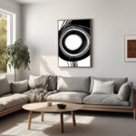 הוסיפו טאצ׳ מודרני לקירות שלכם עם ציור קווים ייחודי. ציור אבסטרקטי בצבעי שחור ולבן, המציג קומפוזיציה גיאומטרית מעגלית. הדפסת תמונות מינימליסטית של תמונה בשחור לבן שתשתלב בקלות בכל חלל, הן כתמונה לסלון והן לחדרים אחרים בבית. יצירה אבסטרקטית מונוכרומטית וניטרלית, המוסיפה תחכום ועניין לעיצוב הפנים. אמצו את הסגנון המינימליסטי עם יצירת אמנות ייחודית זו.