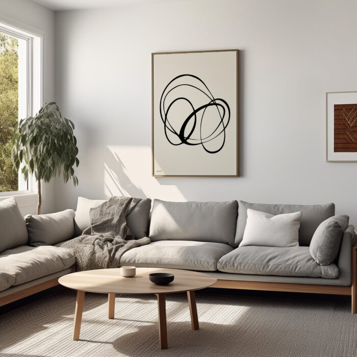 הוסיפו נגיעה של תחכום מודרני לבית עם ציור קו בשחור בז׳. יצירת אמנות מקורית, בהשראת האסתטיקה המינימליסטית של העיצוב המודרני. משיכת קו אחת עדינה משרטטת צורה גיאומטרית פשוטה, יוצרת תחושה של שקט ושלווה. תמונה זו משתלבת בצורה מושלמת עם חללים בסגנון מודרני, נורדי או מינימליסטי, והיא תוספת סטייל נהדרת לכל חלל. ניתן להדפיס על קנבס או נייר צילום מקצועי ולמסגר במגוון אפשרויות של הסטודיו.