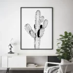 קקטוס מונוכרומטי | תמונת אמנות מדברית בשחור-לבן