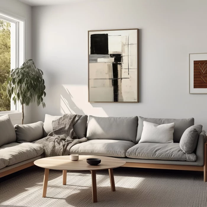 תמונה אבסטרקטית מינימליסטית בגווני בז׳ ושחור בהשראת האמנות המודרנית. ציור שמן עם משיכות מכחול נקיות וקווים עדינים בצבעי בז’ ושחור עוצמתי משתלבים עם גווני אדמה ניטרליים ליצירת סגנון אבסטרקטי מושלם, ויוצרים מראה נקי ומודרני. הפשטות של הציור מאפשרת לו להשתלב בקלות עם מגוון סגנונות עיצוב, בין אם מדובר בסלון מודרני, חדר שינה מינימליסטי או משרד ביתי, מה שהופך אותה לתוספת מושלמת לכל חלל. ההדפסה נעשית על נייר פיין ארט איכותי או בד קנבס טבעי לבחירתכם, תוך שימוש בטכנולוגיות הדפסה מתקדמות המבטיחות תוצאה עמידה לאורך שנים. הזמינו עוד היום ותנו לבית שלכם טאץ’ ייחודי ומרשים!