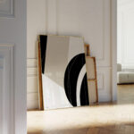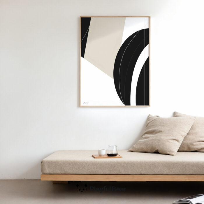 תמונה מודרנית בסגנון גאומטרי פשוט. יצירת אמנות להדפסה על קנבס או נייר פיין ארט עם צורות גאומטריות עגולות וקווים עדינים בגוונים של שחור לבן ובז׳. תוספת עיצובית מעולה שתכניס סטייל ייחודי ופשוט לכל חלל בבית או במשרד. הסגנון המינימליסטי והנקי מאפשר לה להשתלב בצורה מושלמת בחלל הבית ויוסיף טאצ׳ לכל קיר בסלון, במבואת הכניסה, בפינת האוכל או בחדר השינה. זמינה במגוון גדלים ובאפשרויות מסגור.