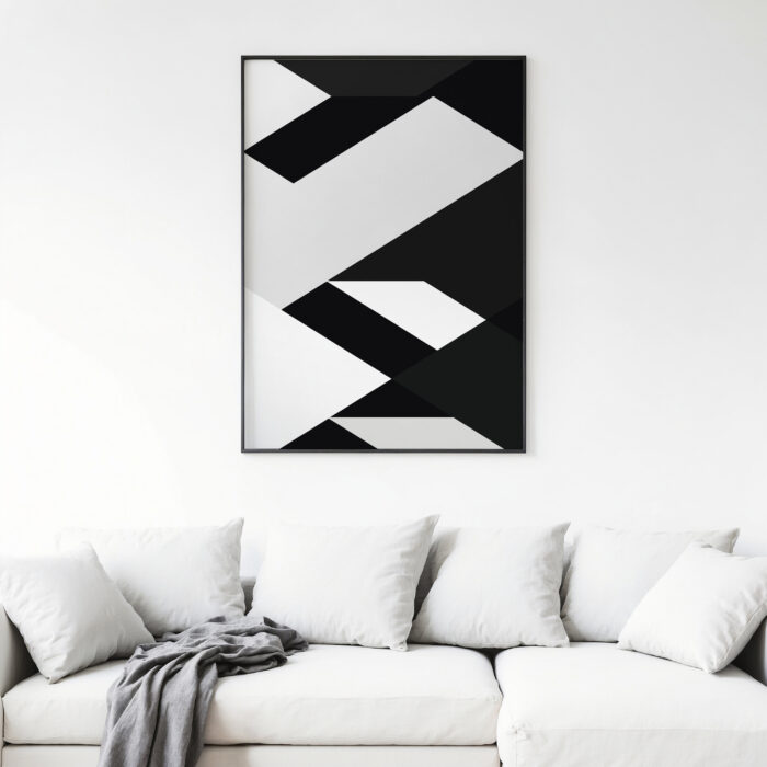 הדפס קיר מינימליסטי של תמונה מופשטת עם צורות גיאומטריות בגווני שחור לבן. העיצוב הפשוט והניטרלי הזה מהווה תוספת אלגנטית לעיצוב הבית בסגנון סקנדינבי או מודרני. אמצו את התחכום והפשטות כדי להוסיף אווירה מרגיעה לכל חלל בבית. הדפס האומנות הזה יוסיף נגיעה מודרנית ומעניינת לעיצוב הפנים שלכם.
