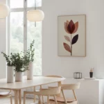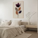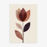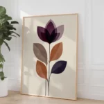 תמונה בהשראת העיצוב המודרני של אמצע המאה (מיד סנטורי), הלוכדת את מהות פרח הצבעוני בקווים גיאומטריים אלגנטיים ובפשטות מתוחכמת. עלי הכותרת של הפרח מוצגים בשכבות שקופות ומרובדות של צבעים חמים ועשירים – מבורדו עמוק ושזיף כהה ועד ורוד עתיק וטרה קוטה. השילוב ביניהם יוצר תחושת עומק, אור ורוגע, והופך את היצירה לשילוב מושלם של אלגנטיות קלאסית ושלווה עיצובית עכשווית.