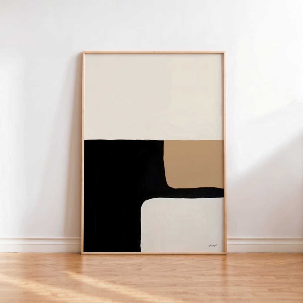 ציור מינימליסטי על קנבס בסגנון ג׳פנדי. משיכות מברשת עדינות וצורות גאומטריות בגווני שחור ובז׳, יוצרות מראה מופשט המזכיר את האסתטיקה היפנית המינימליסטית. הגוונים הניטרליים משתלבים בקלות עם מגוון רחב של סגנונות עיצוב, בעוד שהצורות הגאומטריות והקווים הנקיים מוסיפים נופך של תחכום. הקומפוזיציה המאוזנת משרה אווירה של שלווה ואיזון מושלמת לכל חדר בביתכם. גווני הבז׳ שחור הנייטרלים משתלבים בקלות עם מגוון רחב של סגנונות עיצוב, מקלאסי ועד מודרני. בין אם יש לכם סלון סקנדינבי או חדר שינה בסגנון בוהמייני, התמונה הזו תשלים את האווירה בצורה מושלמת. התמונות שלנו מודפסות על קנבס באיכות גבוהה או על נייר פוטו ארט מקצועי ומגיעות מוכנות לתלייה.