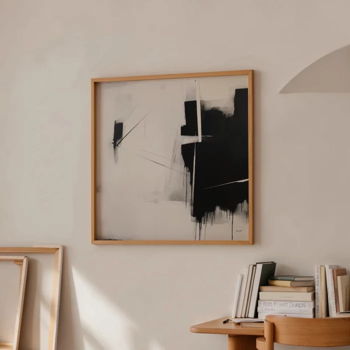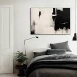 תמונת אבסטרקט שחור לבן מינימליסטית ואלגנטית זו, עם משיכות מכחול חופשיות בצבעי שמן, תעניק לבית את האווירה הרגועה והניטרלית של עיצוב מודרני. תמונת קנבס גדולה זו מזמינה אתכם להוסיף מגע מינימליסטי ונקי לכל חלל בבית. מגיעה במגוון גדלים ומסגרות לבחירתכם.
