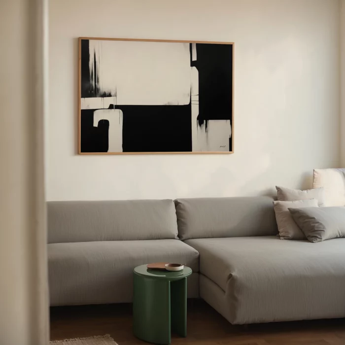 הוסיפו אלגנטיות עוצרת נשימה לעיצוב הבית עם תמונת אבסטרקט מונוכרומטית. ציור דיגיטלי מינימליסטי עם משיכות מברשת בגוונים ניטרליים יוסיף סגנון מודרני לכל חלל. ניתן להדפיס כתמונת קנבס או כפוסטר אופקי גדול במגוון גדלים. תמונה שחור לבן לבית או למשרד שישדרג את עיצוב הפנים שלכם עם אסתטיקה עכשווית.